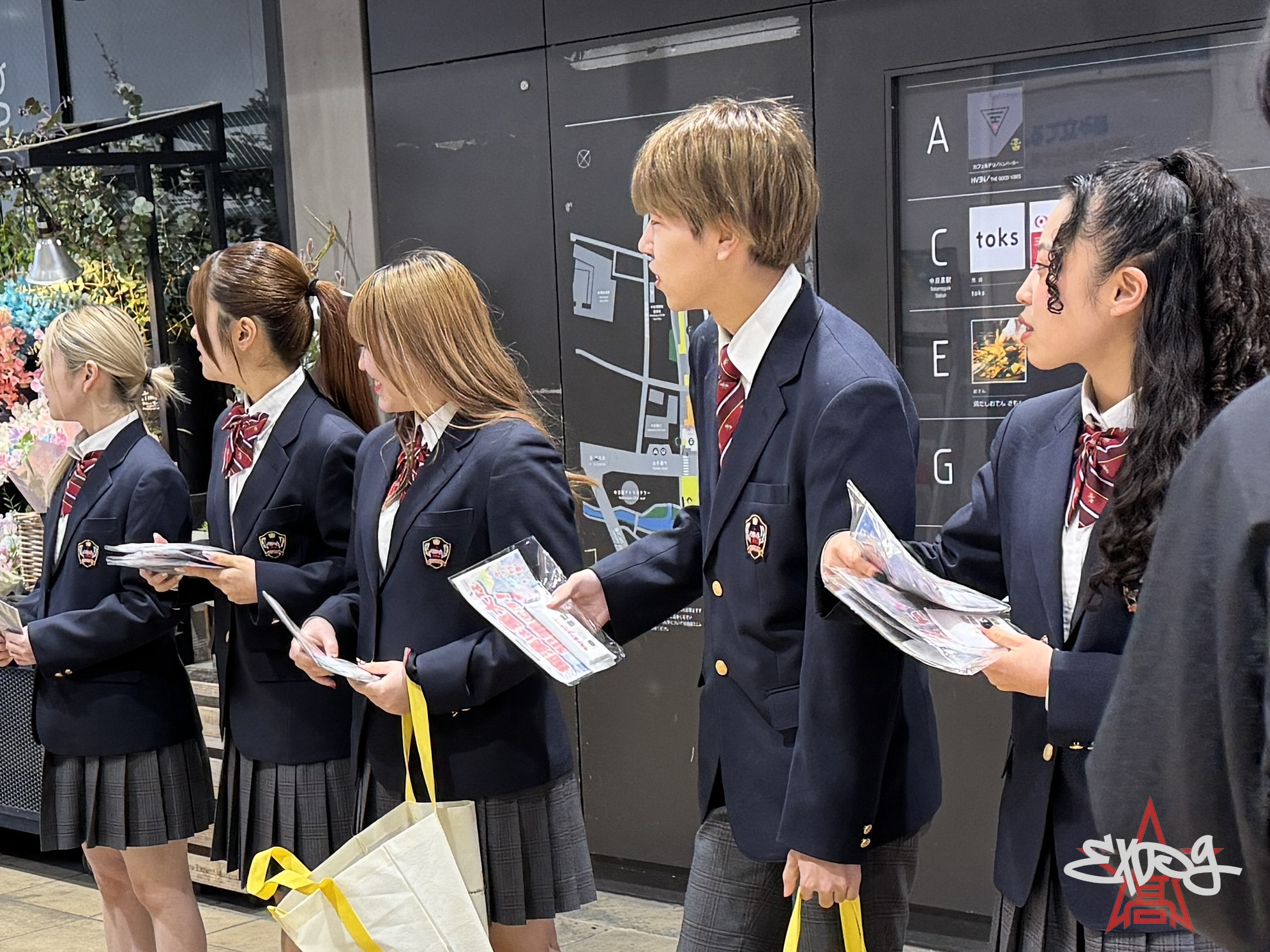 1/16(金) 目黒警察署と連携のもと「痴漢被害防止キャンペーン」に 2年生14名がお手伝いで参加しました。